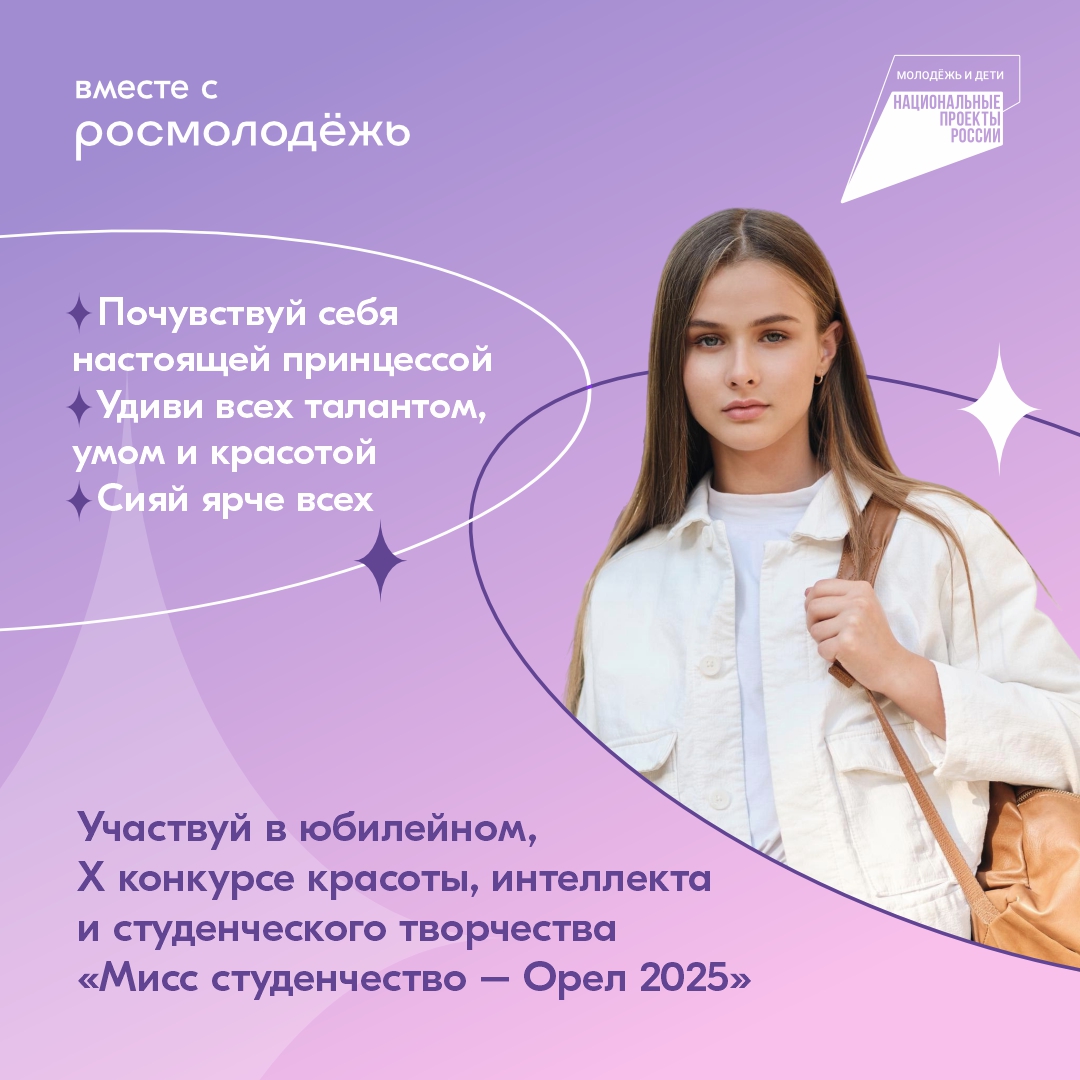 Орловские студентки могут принять участие в конкурсе красоты, интеллекта и студенческого творчества «Мисс Студенчество - Орёл 2025»